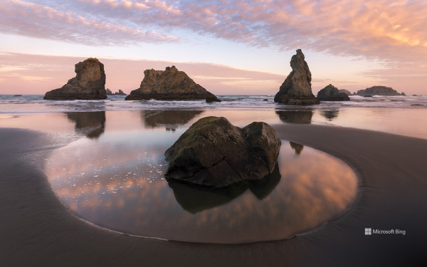 오늘 사진에서 우리는 미국 오리건주 밴던에 있는 밴든 비치의 인상적인 암석을 볼 수 있습니다. 소위 "바다 스택"은 태평양에서 웅장하게 솟아올라 전 세계의 사진작가와 여행자를 끌어들이는 극적인 배경을 만듭니다. 수백만 년에 걸쳐 바람과 파도의 힘에 의해 형성된 이 나무는 해안 침식과 오레곤의 야생의 아름다움에 대한 인상적인 증거입니다. 밴던 비치는 눈에 띄는 바위뿐만 아니라 하늘이 황금색과 보라색으로 변하는 장엄한 일몰로도 유명하며 진정한 자연 예술 작품입니다.