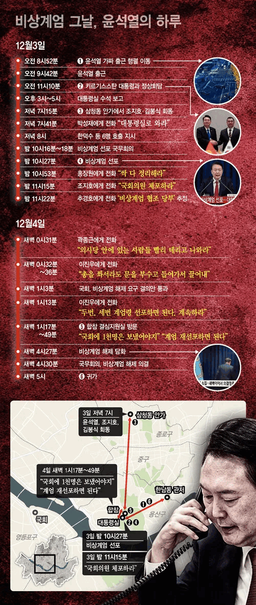 윤석열, ‘가짜 출근’으로 시작한 계엄의 날…질책·고함 치다 새벽 5시 퇴근