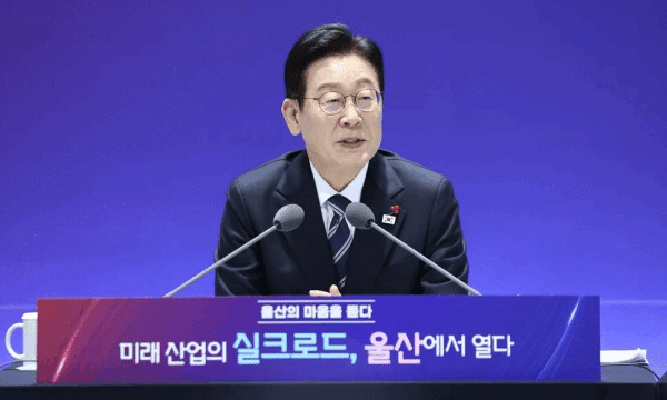 이재명 대통령이 23일 울산전시컨벤션센터에서 열린 ‘울산의 마음을 듣다’ 타운홀미팅 간담회에서 발언하고 있다. 연합뉴스